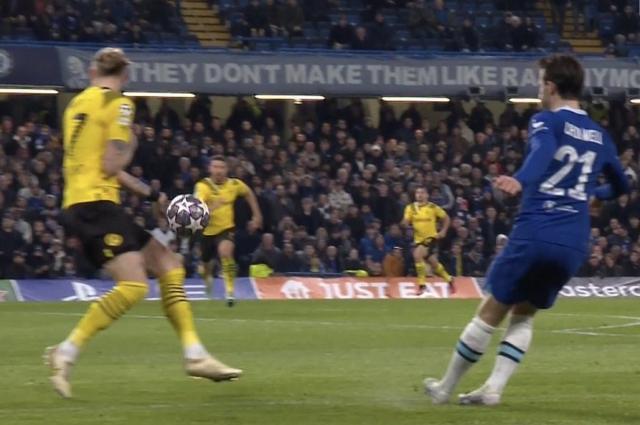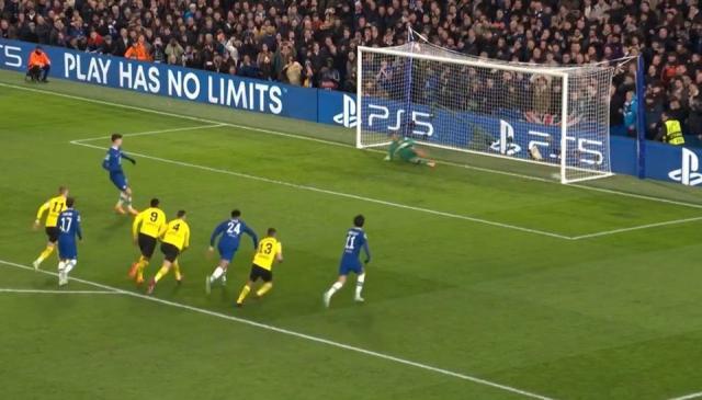 由于多特球员提前进入禁区,裁判判罚重罚,哈弗茨第二次操刀射同样角度命中。2比0!切尔西总比分反超。