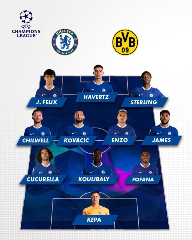 切尔西阵容(343):凯帕/韦斯利·福法纳、库利巴利、库库雷利亚/里斯·詹姆斯、恩佐·费尔南德斯(87’扎卡里亚)、科瓦契奇(83’普利希奇)、奇尔韦尔/斯特林(83’洛夫特斯-奇克)、哈弗茨、费利克斯(67’加拉格尔)